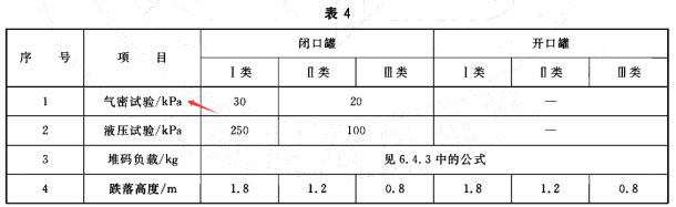 01 简化前置流程 新标准删除了旧版中“试验样品的准备”(引用GB/T 4857.17)和“试验强度值的选择”(引用GB/T 4857.18)两个环节。这并非省略要求,而是将选择权更明确地指向产品标准或客户要求,避免了间接引用带来的混淆。 02 明确试验压力 旧标准要求按其他标准选择“试验强度值”,表述间接。新标准直接规定“试验压力值应符合相应包装容器的气密测试压力值要求”。这直接指向了产品标准(如钢桶、塑料桶国标)或订货合同中的明确规定,操作指向性更强。 图3 GB19160 危险品用塑料罐的气密试验压力 03 关键步骤修订 进气孔设置 旧标准允许在封闭器、桶体/桶底开孔。新标准建议设置在对密封性影响较小的侧壁、顶部或底部,并尽量避免在密封装置、进料口或排气口上。这一改变旨在减少因开孔位置不当而额外引入的泄漏风险,使测试结果更真实反映容器本身的密封性。 特殊容器处理 新标准新增了对有排气装置容器的处理要求:“堵住排气孔或换成不透气装置,并确保连接处气密完好”。旧标准无此规定,这使得新标准能更全面地覆盖各类复杂结构的包装。 试验持续时间 旧标准规定“试验持续时间为5分钟”。新标准修改为“试验持续时间为达到稳定压力值后保压5分钟”。增加了“达到稳定压力值后”的前提,使计时起点更科学,避免了因充气未稳导致的测试误差。 结果判定 关于气泡判定的描述更加严谨,逻辑顺序微调,但核心要求一致:需排除试样外部结构携带空气产生的气泡。